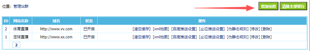 1、进入站群管理列表,如下图。