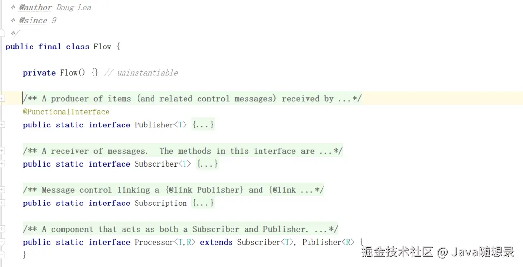 直接在 JDK9 版本之上查看 Doug Lee 提供的 Flow 类。