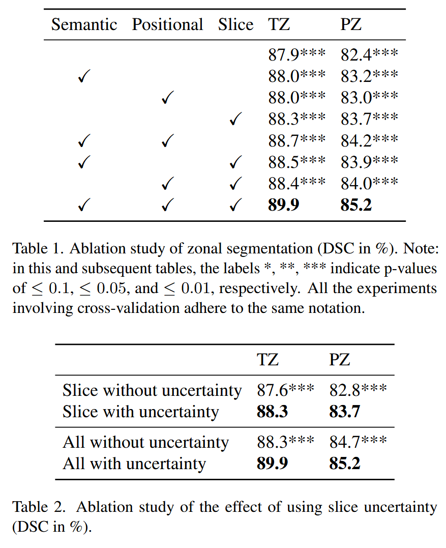 - 作者分别移除了 Semantic、Positional 和 Slice 注意力。结果显示,Slice Attention 的贡献最大,直接证明了在各向异性数据中,显式建模层间关系是提升性能的关键。