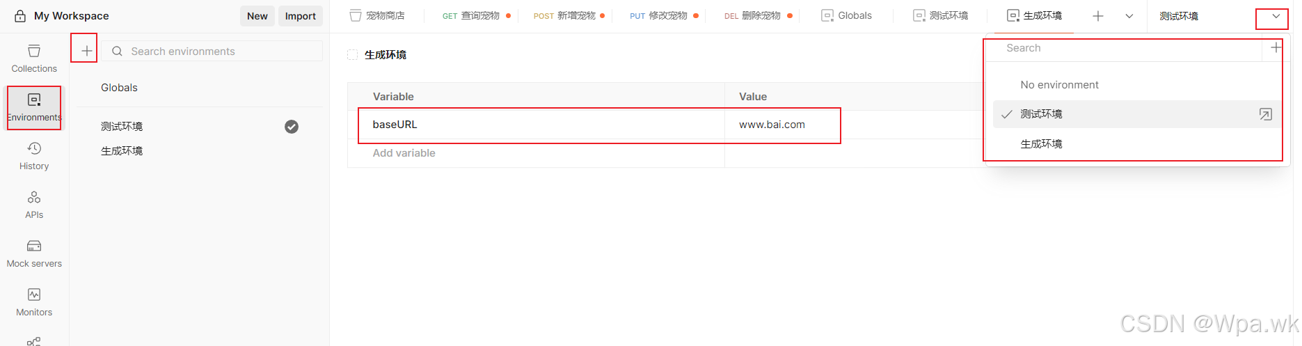 环境变量设置:可以通过公共变量,快速切换生产环境和测试环境,提高测试效率
