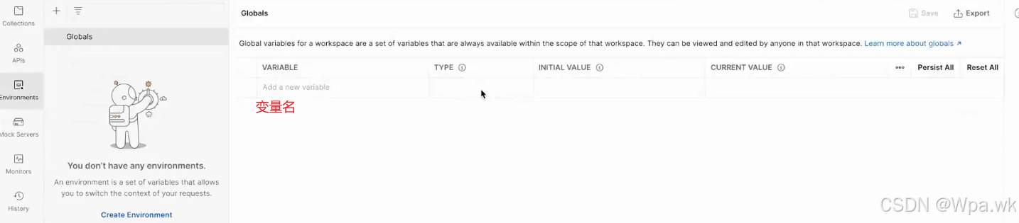 - [4.1 **Environment**:环境范围-环境变量](#4.1 Environment:环境范围-环境变量)