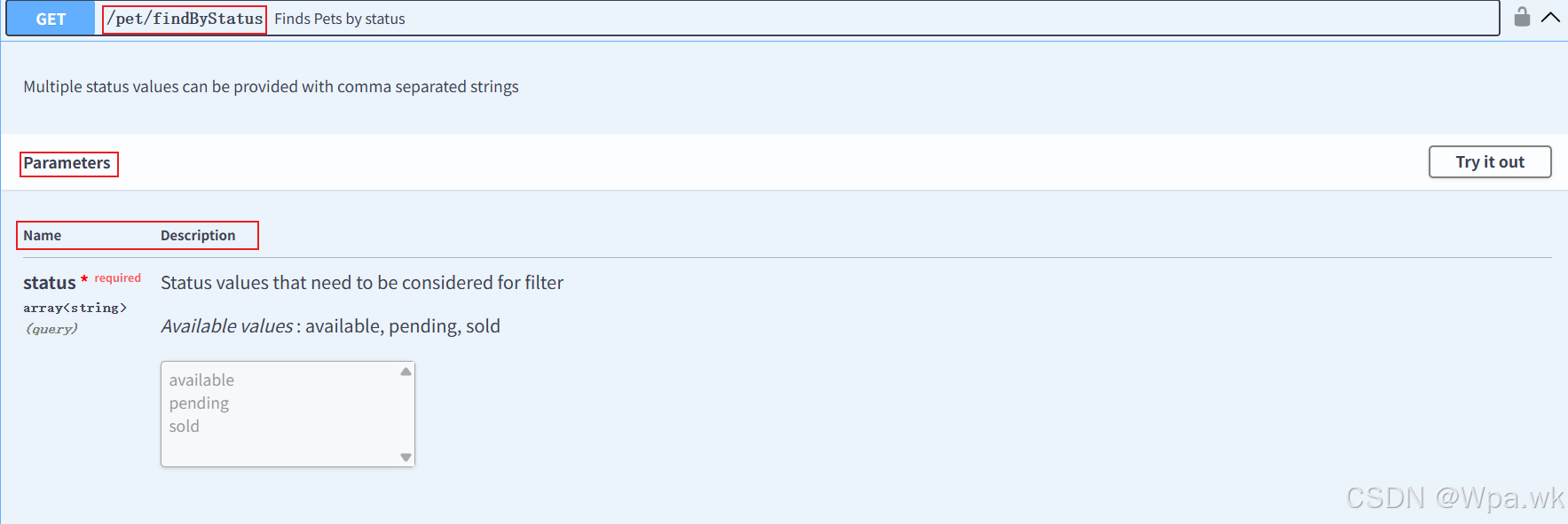 点击GET请求: 可以查看请求参数的名称-Name,参数描述-Description