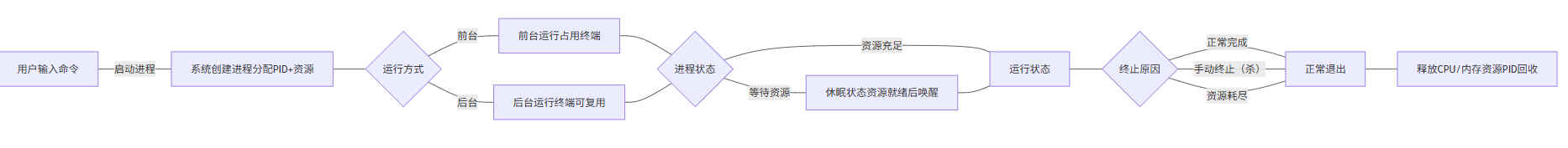 父子进程:类比"主程序和子窗口",你打开终端(父进程),在终端里运行ls命令(子进程)。父进程终止,子进程可能跟着终止;子进程终止,父进程不受影响。