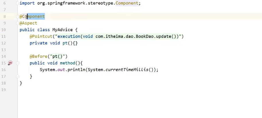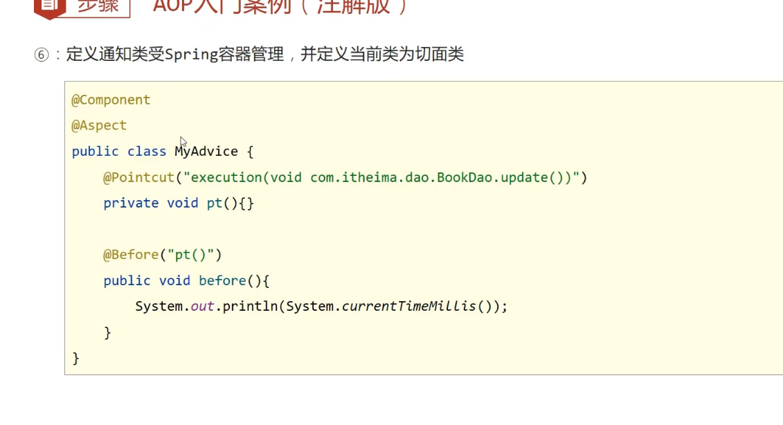 execution(void com.itheima.dao.impl.BookDaoImpl.update())