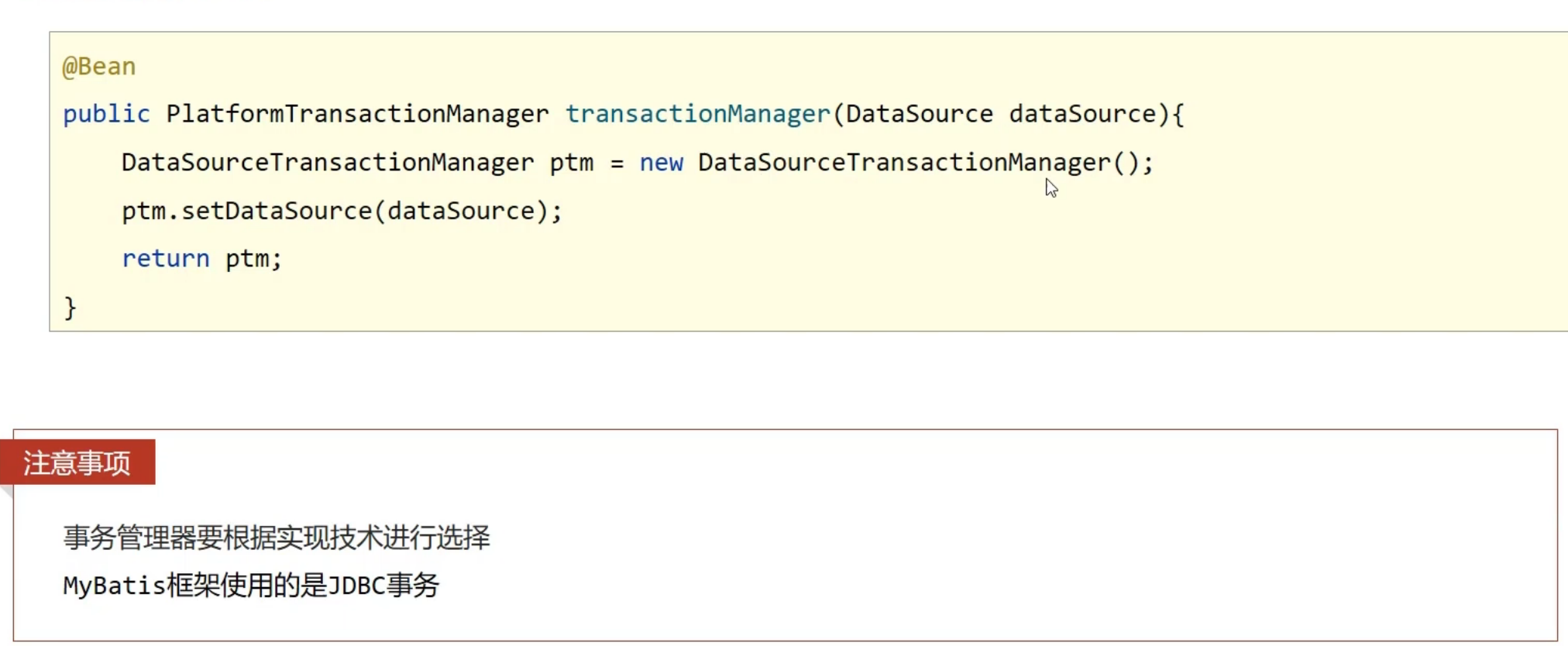 注解式事务可以添加到业务方法上表式当前方法开始事务,也可以添加到接口上表示当前接口所有方法开启事务