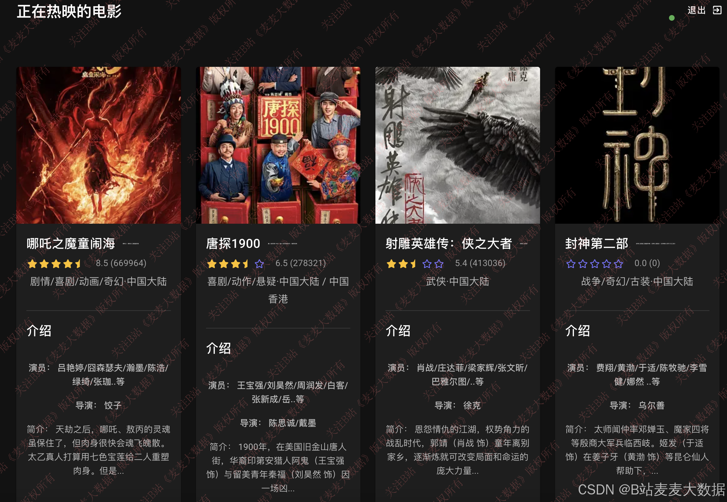 - 正在上映电影:标记上映中的影片,优先展示;
