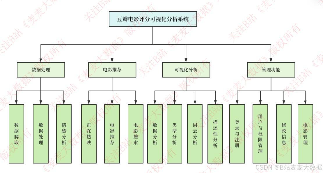 - 数据爬取与清洗:通过Scrapy爬虫获取豆瓣评论数据并清洗存储至MySQL。