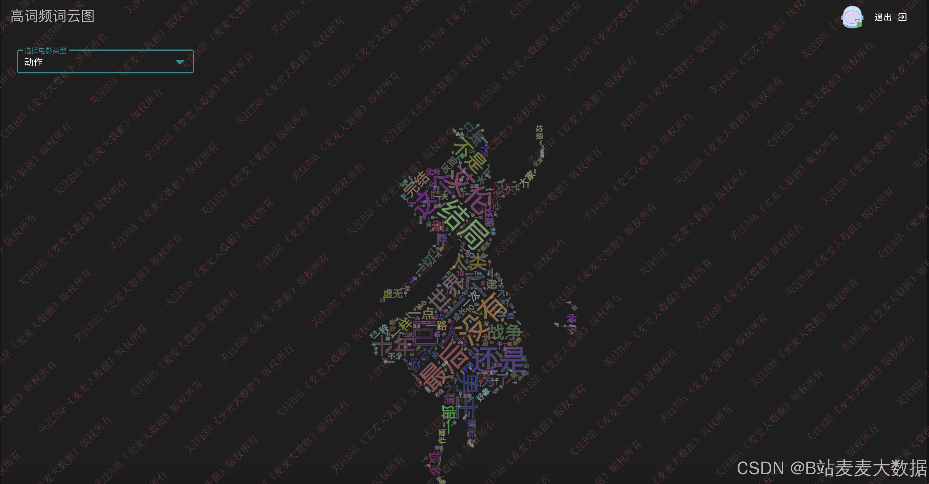 - 词云分析:对电影简介进行分词后生成词云,直观展示高频主题词;
