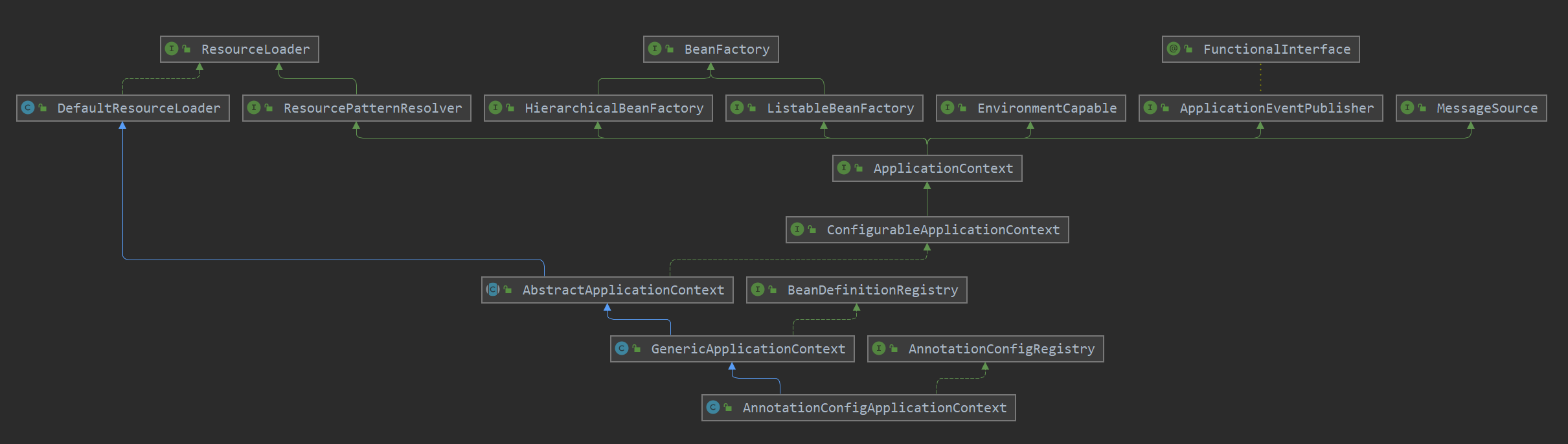 AnnotationConfigApplicationContext构造方法中几乎完成了Spring容器的所有工作:配置文件和配置类的读取,创建BeanDefinition、创建bean实例...