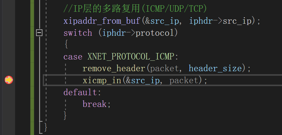xnet_tinny.c中IP协议处理中向上层协议交付可添加ICMP协议的处理部分