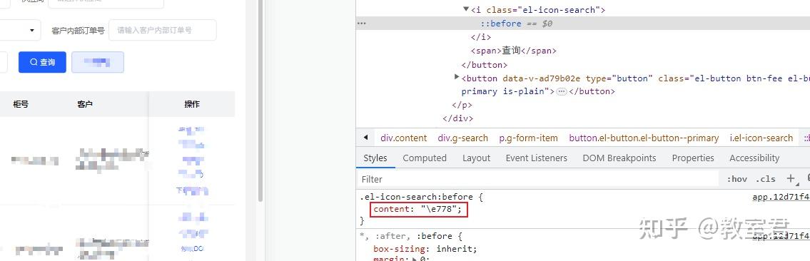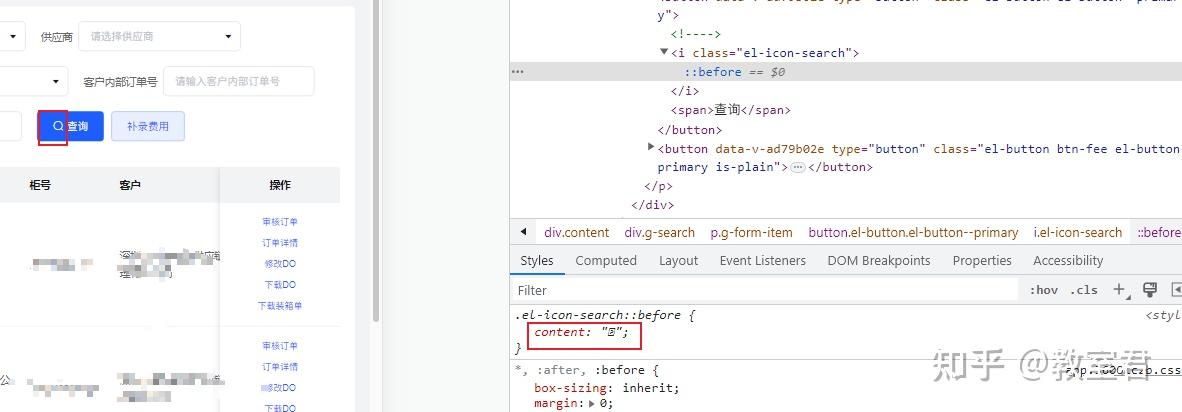 立马跑到线上去排查,在自己电脑上登录进去看样式也没啥问题呀,然后审查元素才看到字体图标的 content 里确实是乱码: