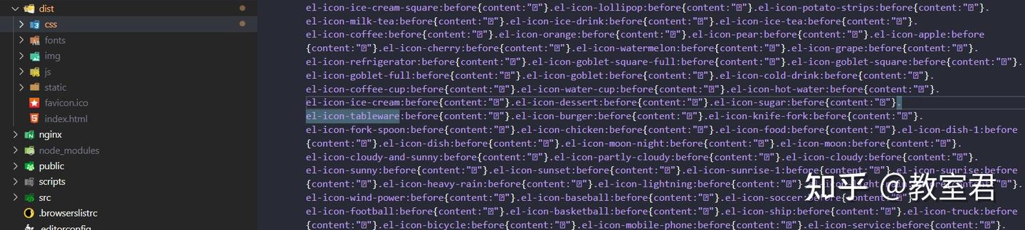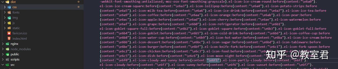 自己在本地 build 打包看了下源码,dist/css/app.xxx.css,里面的字体图标的 content 也确实是乱码: