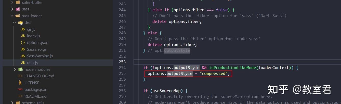 权衡之下选择了最优雅的最后一种,不过并没有去更改 sass 和 sass-loader 的版本,只修改了 outputStyle 配置,这个不设置默认会是 compressed: