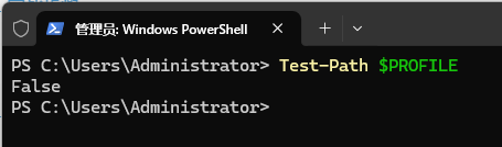 Test-Path $PROFILE返回False,说明当前用户没有创建 PowerShell 配置文件。需要手动创建配置文件(如Microsoft.PowerShell_profile.ps1)以自定义环境设置。