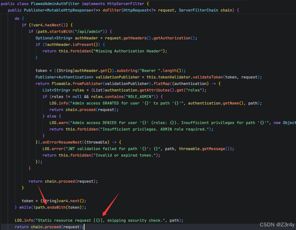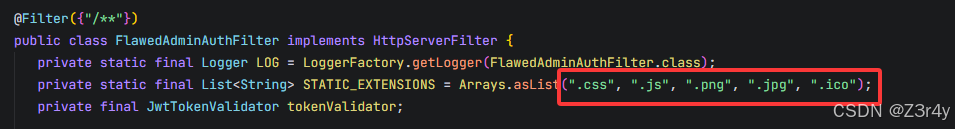 来看filter部分,很经典的静态资源路径绕过鉴权