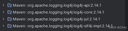 依赖在log4j历史漏洞版本范围内(2.0.0~2.15.0)