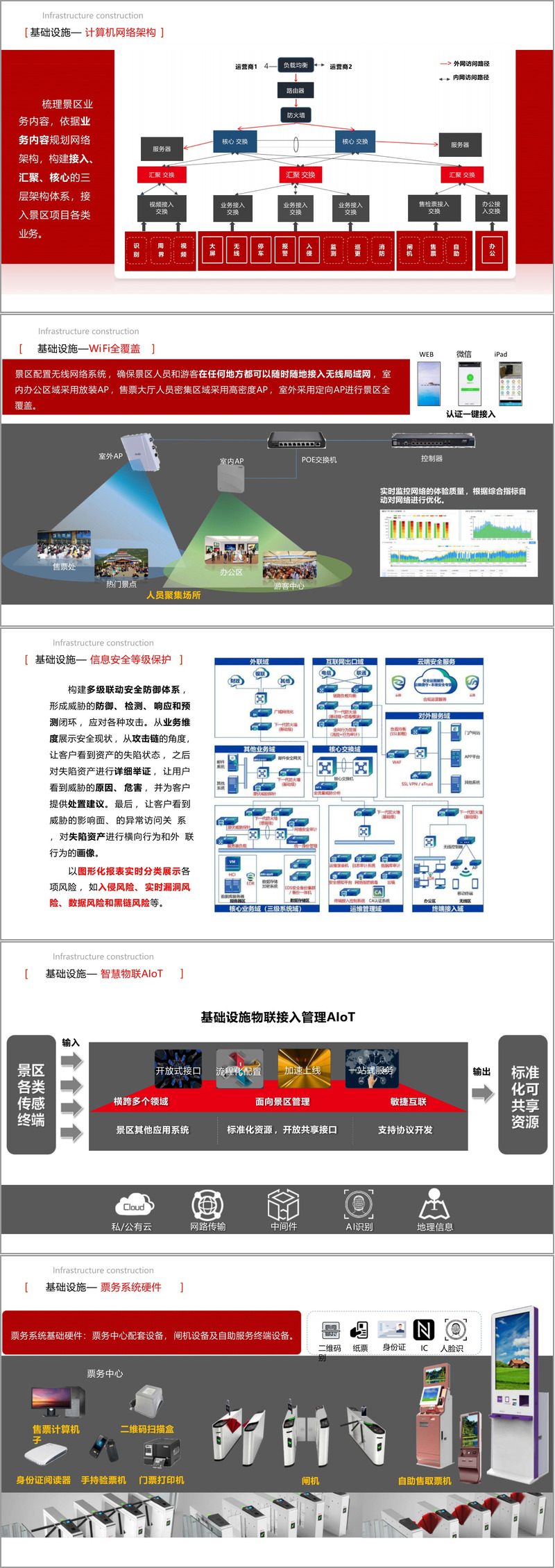 基础设施是智慧景区的根基。方案系统规划了机房、指挥中心、基础网络、信息安全、物联设备等模块。