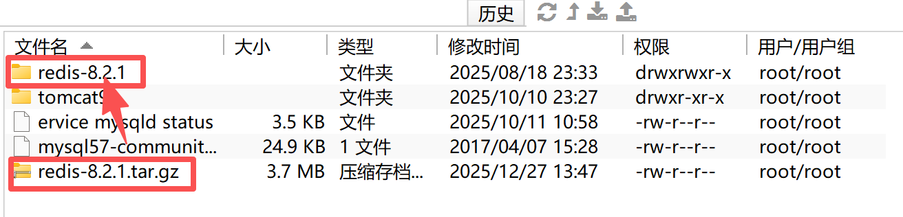 下载好之后移动到服务器里面并且解压: