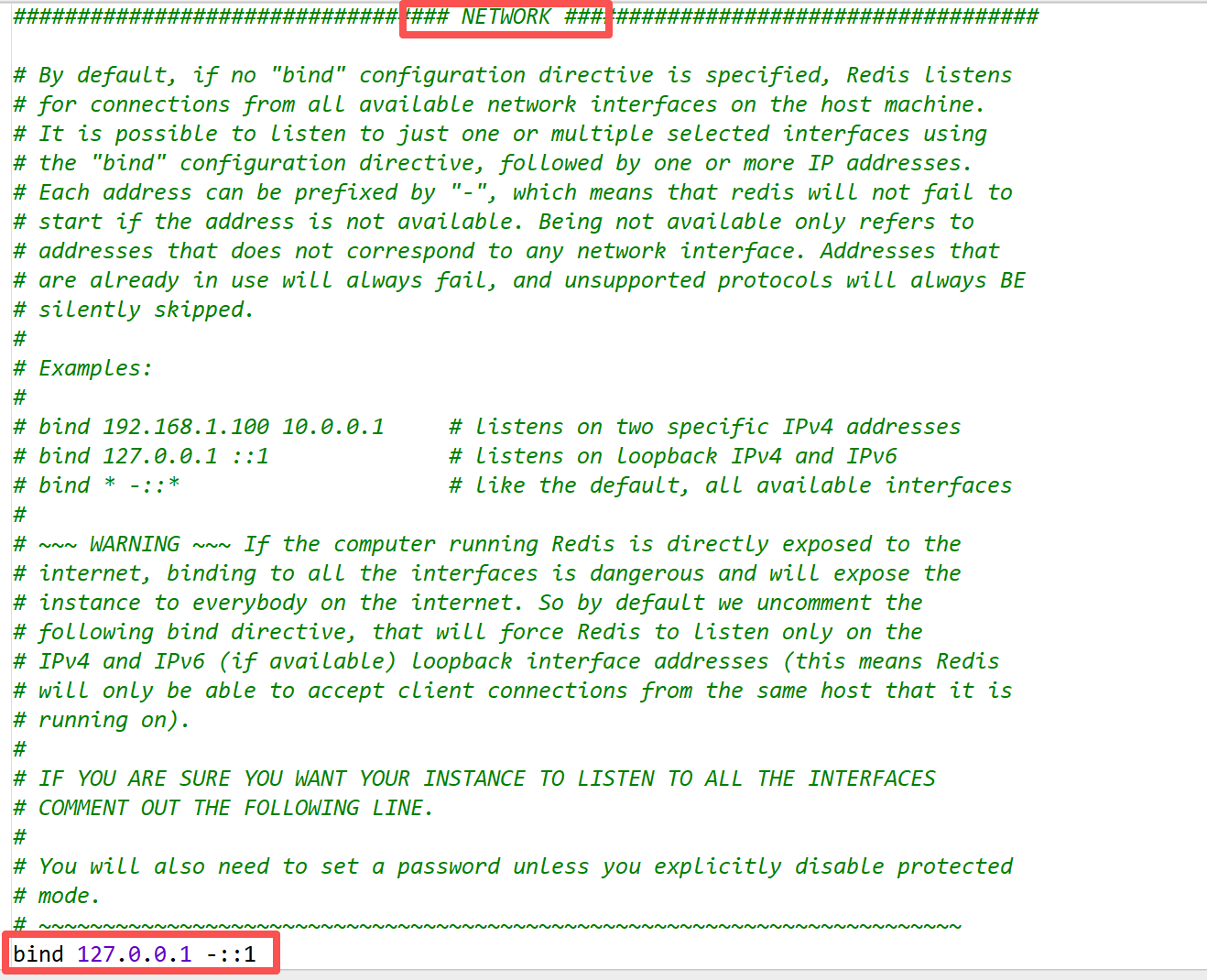 没有设置 bind 绑定具体IP(默认绑定所有接口 0.0.0.0)