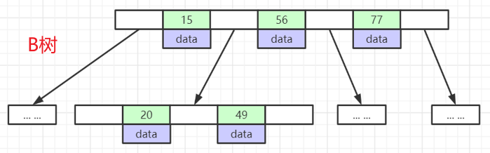 在B树中,你可以将键和值存放在内部节点和叶子节点;