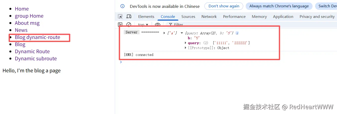 当访问/blog/a?query=11111&query=222222&b=5时,console会输出: