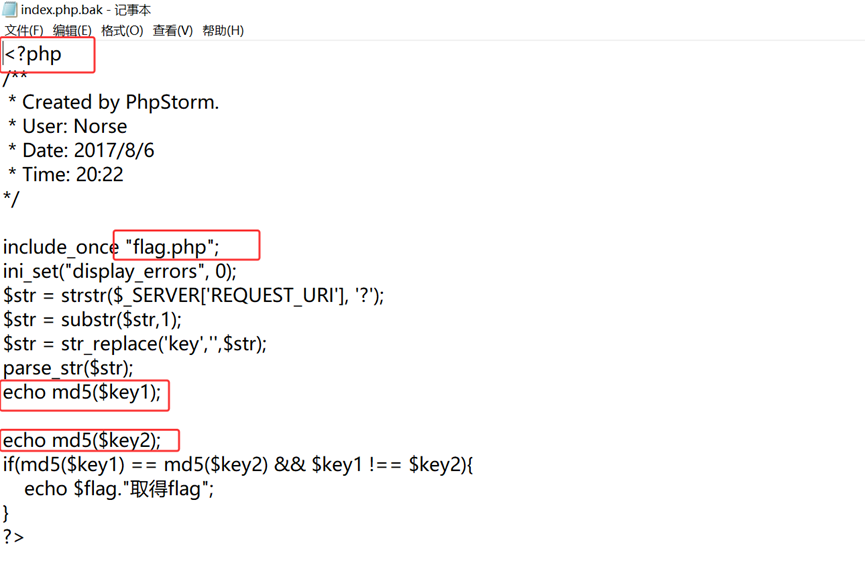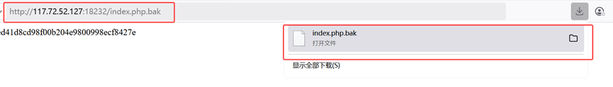 题目提示备份,想到备份文件:/index.php.bak(备份文件)