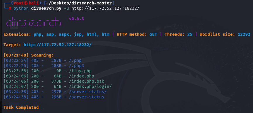 扫描了一下网站目录,有一个flag.php,但是是空白的