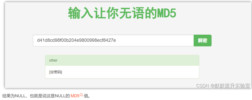 即使用PHP弱比较==漏洞(key不同,MD5值存在且都为0)