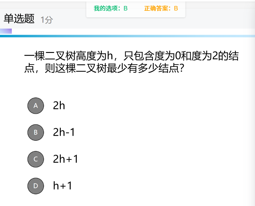 - 第h层:所有节点都是度 0(叶子),共 2 个节点。