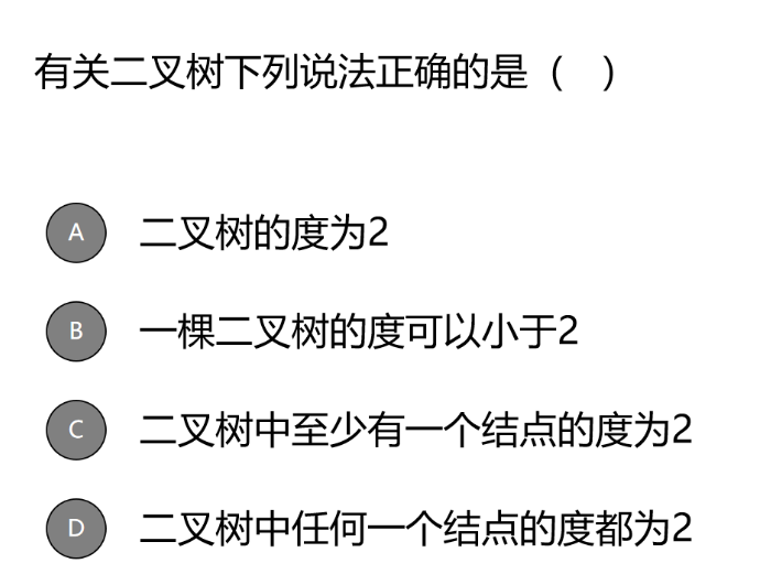 二叉树的 "度" 是指树中所有节点的度的最大值(节点的度是该节点的子节点数量)。
