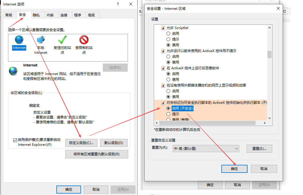 首次访问发现,并没有弹计算机,修改 IE 的ActivateX的配置