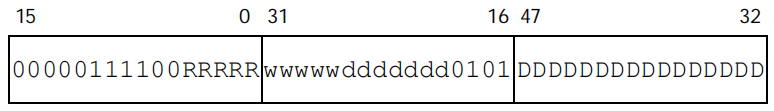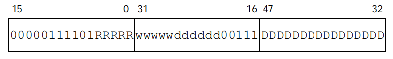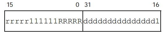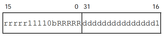 ddddddddddddddd is the higher 15 bits of disp16, and b is bit 0 of disp16.