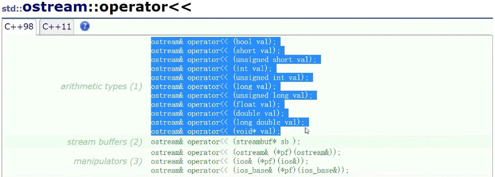 首先我们要知道,流插入和流提取能够支持多种类型是因为其底层采用了大量的函数重载。
