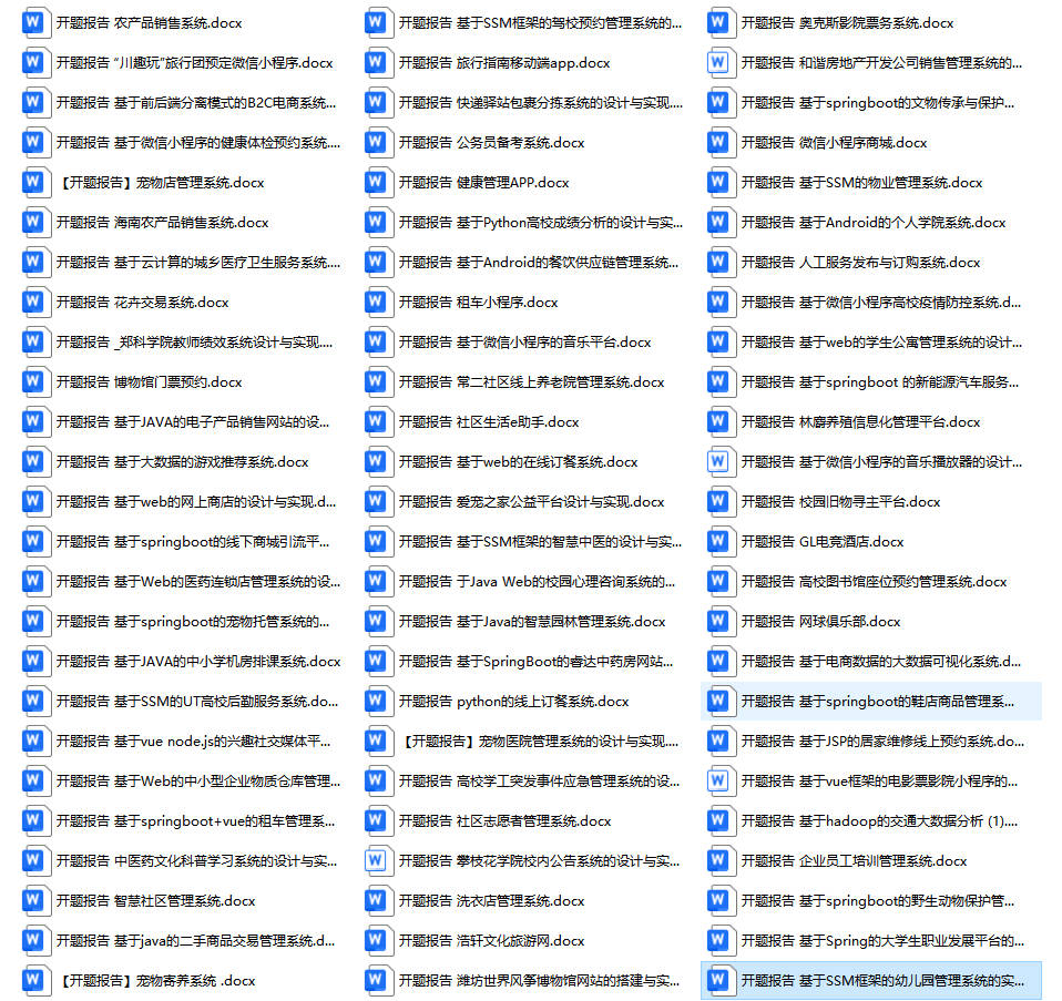 以上是某同学的毕业设计答辩的过程,如果你现在还没有参加答辩,还是开题阶段,已经选好了题目不知道怎么写开题报告,可以下面找找有没有自己符合自己题目的开题报告内容,列表中的开题报告都是往届真实的开题报告,可发送使用或参考。文末或底部来联xi可免费获取