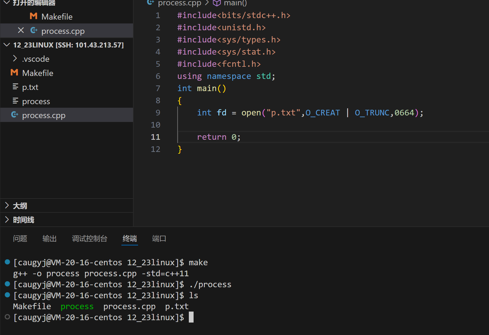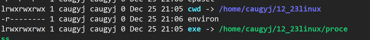这两个都是l开头的,这是个软连接,cwd指的是current work dir:当前进程的工作目录!所以,创建文件的路径实际上是cwd/p.txt!