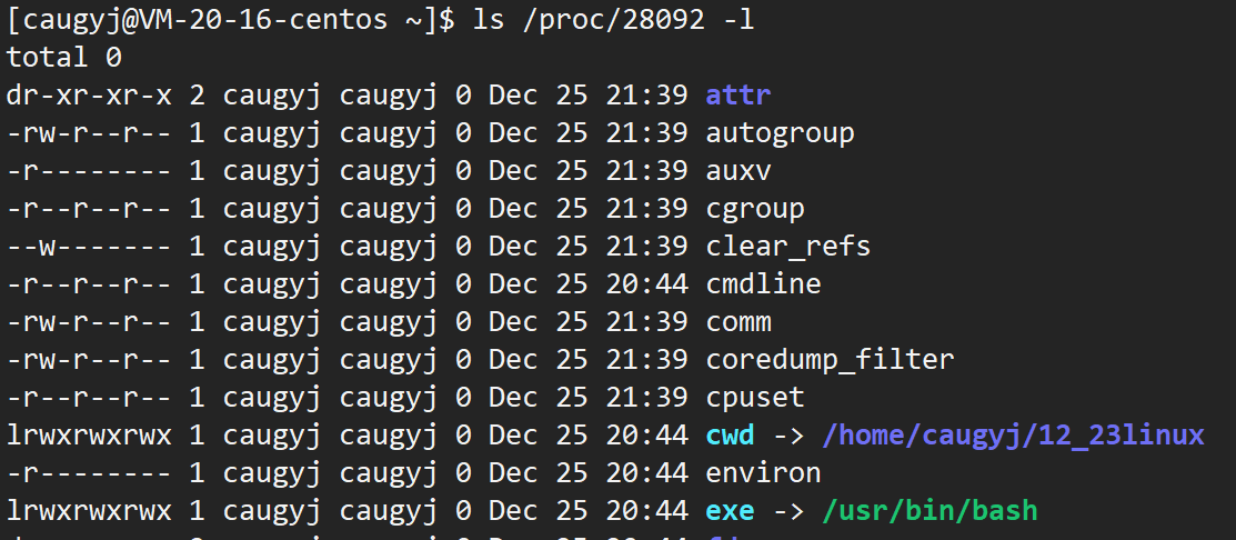 果然创建出了这个文件,但是有个问题,他怎么知道在这个路径下创建的呢??先通过ps ajx | grep xx来查看pid,再通过ls /proc/pid 我们来看一眼进程信息,其中可以看到exe和cwd