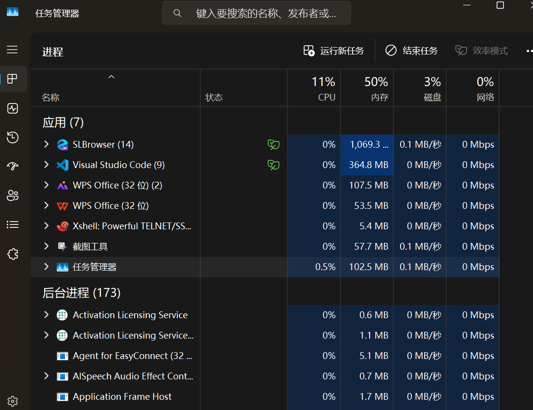 这里先给出一个笼统的概念:一个已经加载到内存中的程序就叫做进程,正在运行的程序也叫做进程。Windows系统下有进程管理器(任务管理器),直接搜索任务管理器或者按Shift + Esc + Ctrl都可以打开。
