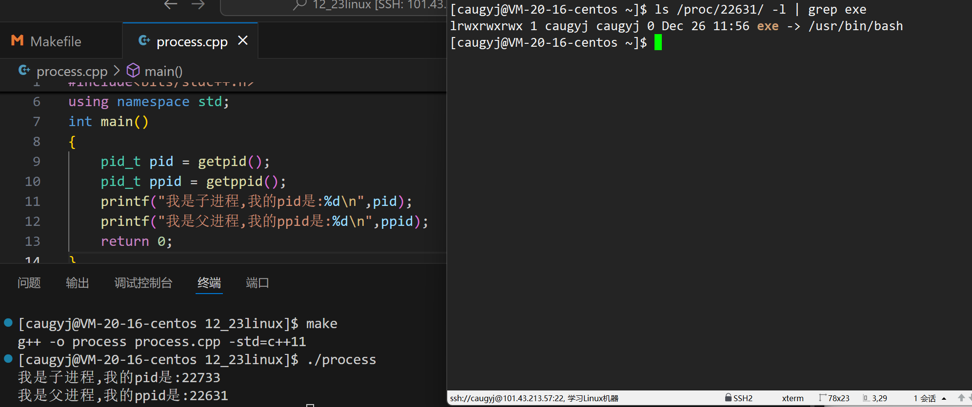 这里看到了有个pid,还有个ppid是什么?ppid是父进程的pid,并且如果你多次运行这个程序就会发现,pid会变但是ppid不会变,那这是什么呢??