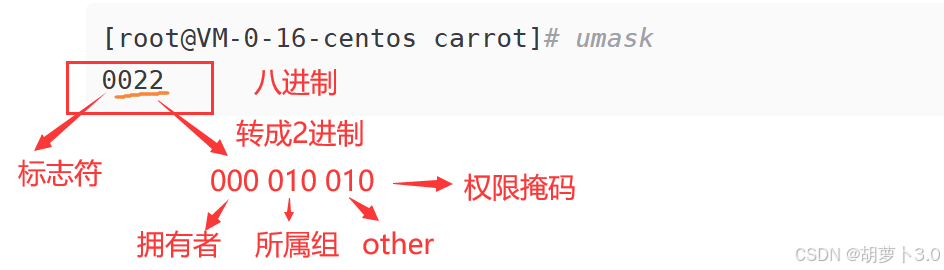 [root@VM-0-16-centos carrot]# umask