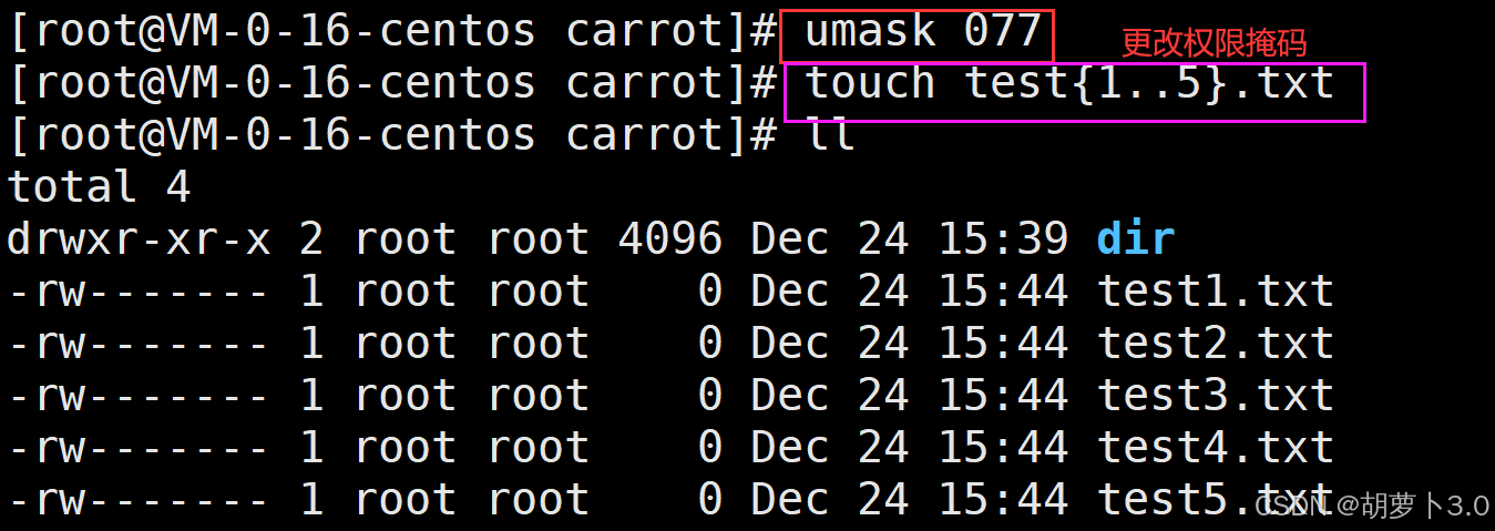 [root@VM-0-16-centos carrot]# umask 066