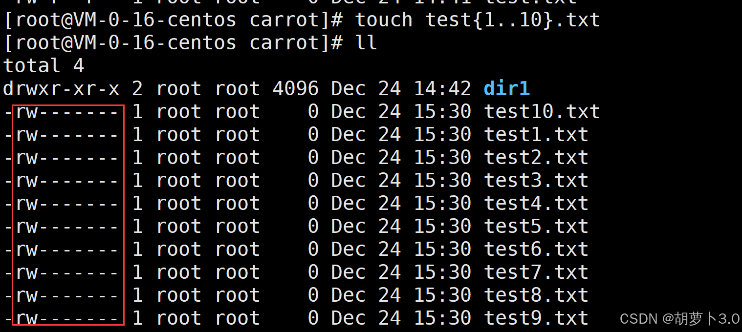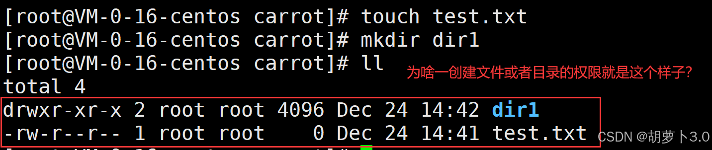 [carrot@VM-0-16-centos dir1]$ ll