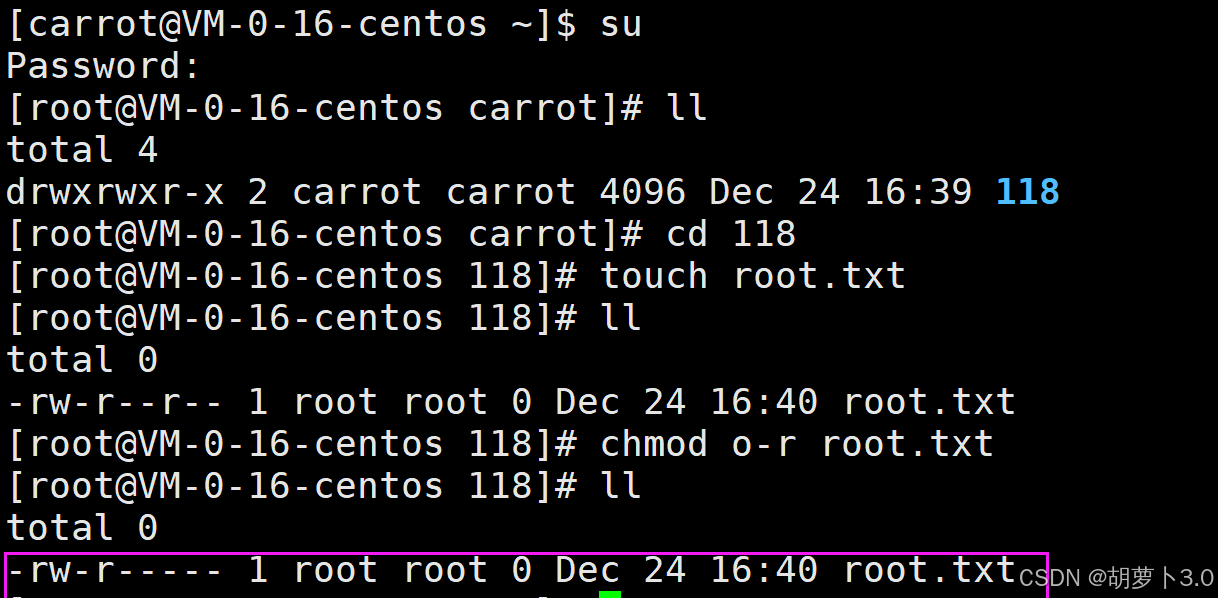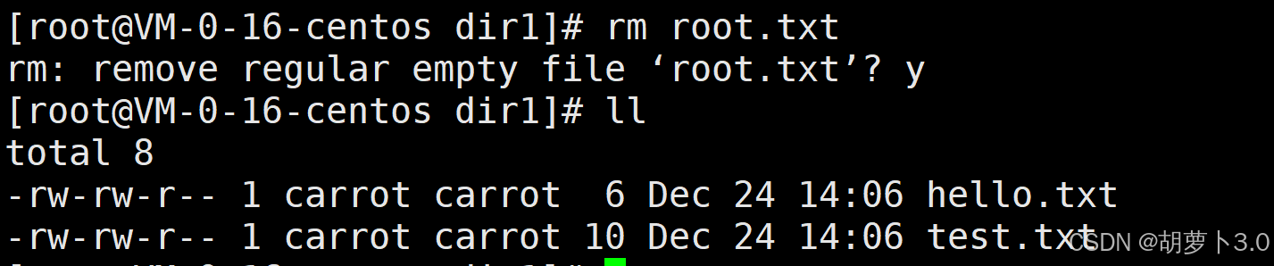 ok,现在我carrot不能对root.txt进行读,写以及执行操作,那我(carrot)删掉这个root.txt文件: