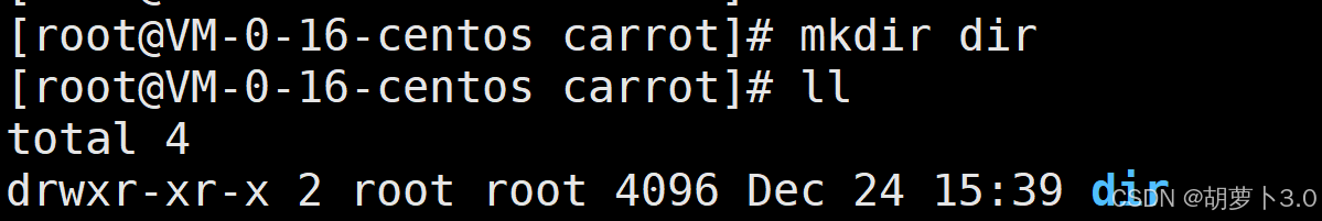[carrot@VM-0-16-centos ~]$ ll dir1