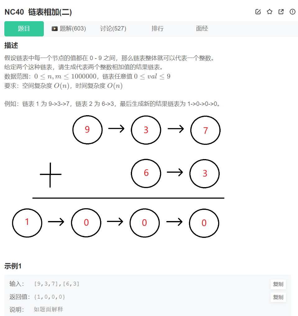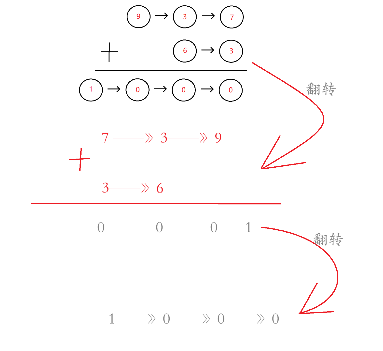 while(cur1 || cur2 || t)//对这两个链表进行加法运算