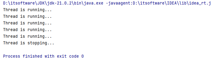 System.out.println("Thread is stopping...");