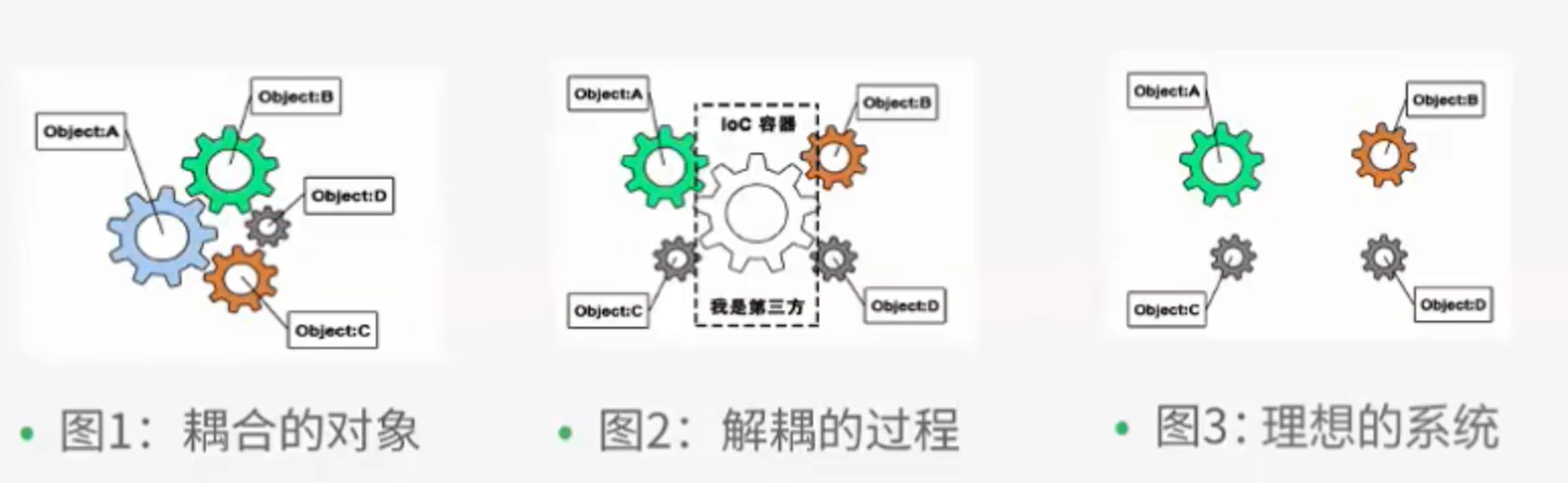 控制反转IoC(Inversion Of Control),是一种设计思想,DI(依赖注入)是实现IoC的一种方法,也有人认为DI只是IoC的另一种说法。没有IoC的程序中,我们使用面向对象编程,对象的创建与对象间的依赖关系完全应变在在程序中,对象的创建由程序自己控制,控制反转后将对象的创建转移给第三方,个人认为所谓控制反转就是:获得依赖对象的方式反转了。