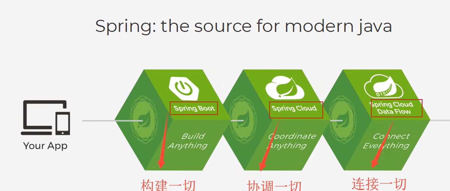 在Spring的官网有这个介绍:现代化的Java开发!说白了就是基于Spring的开发!