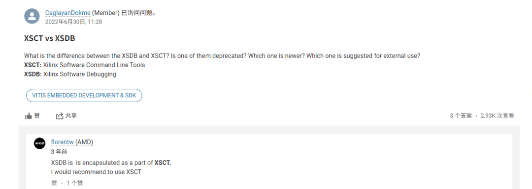 XSCT,即 Xilinx Software Command-line Tool,是 Xilinx 提供的 CLI 工具,用于替代旧的 XSDB(见下图,原文:https://adaptivesupport.amd.com/s/question/0D52E00007GTvwySAD/xsct-vs-xsdb?language=zh_CN)。它安装在安装 Vivado、Vitis 或 PetaLinux 后,并支持脚本与交互式操作。主要用于管理硬件目标、下载 FPGA 或可执行文件、系统初始化等。