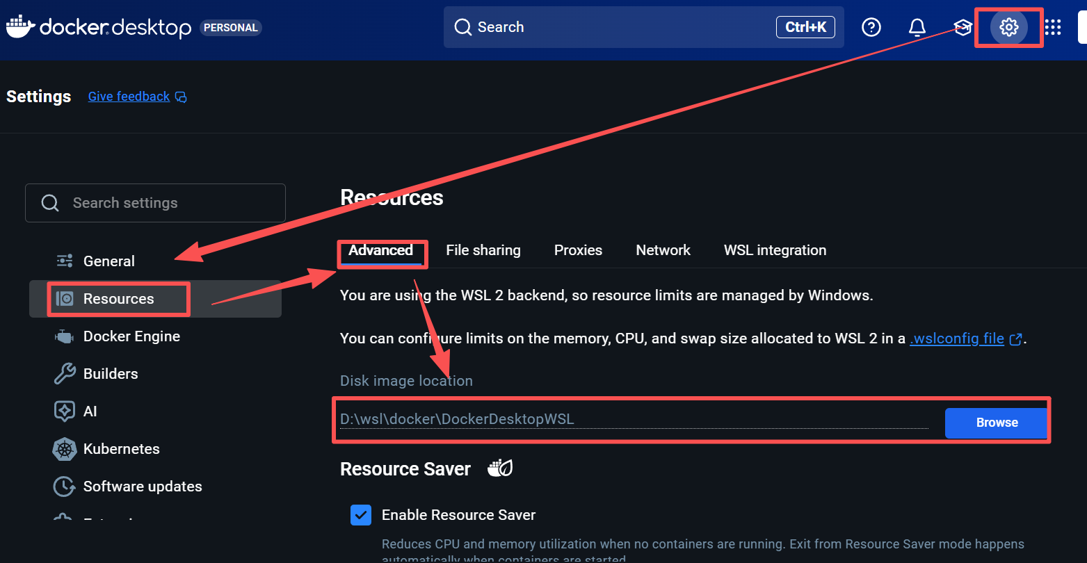 Docker-Desktop修改WSL文件系统到D盘
