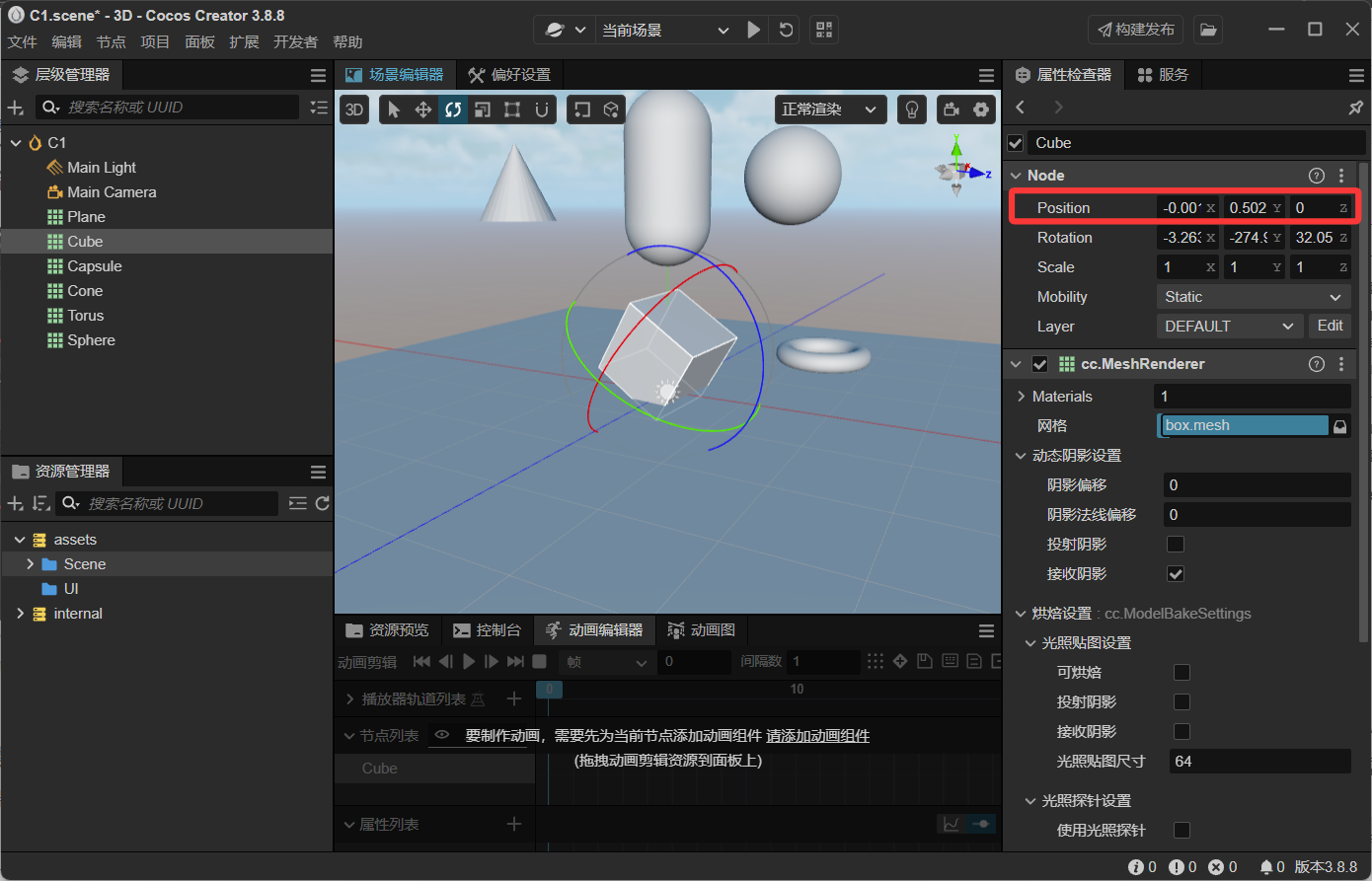 - 属性编辑器里修改位置坐标